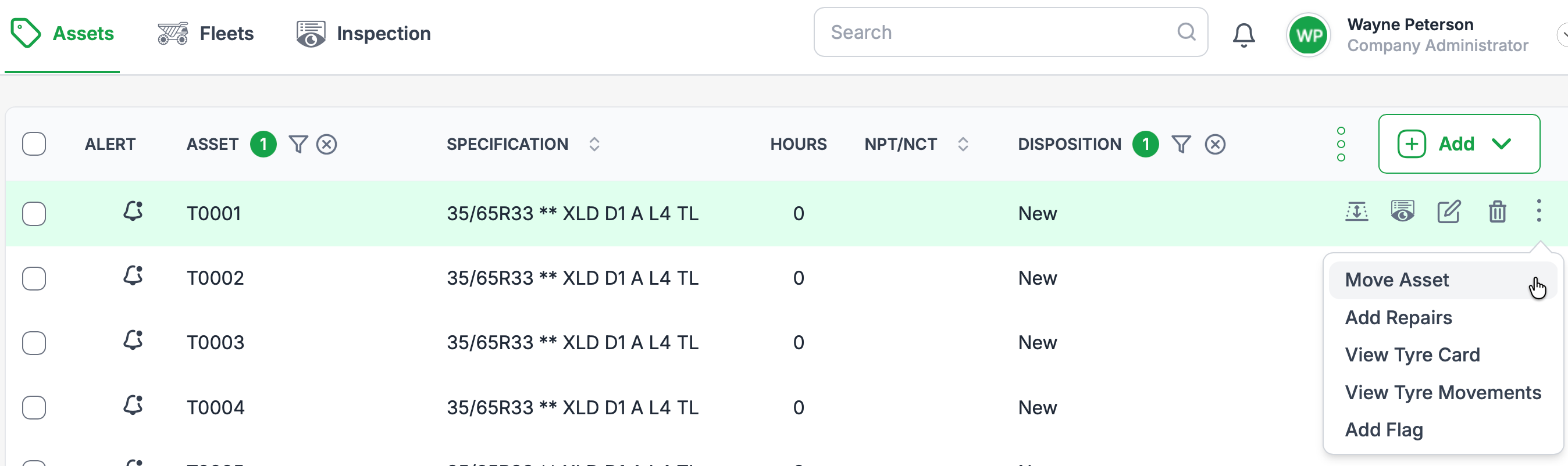 Steps to Move a Tyre Asset