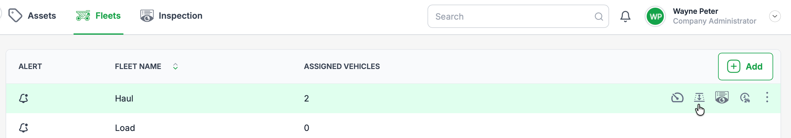 Locate the fleet you want to update (for example, Haul).