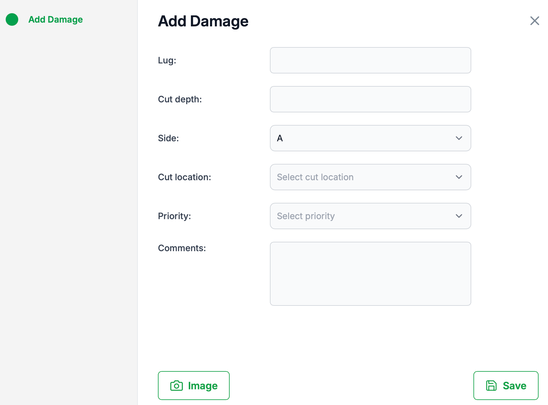 You can capture detailed damage information for each tyre position.